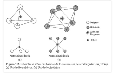 Las arcillas están formadas por silicio, oxígeno y también algunos metales. Para ver como funciona imaginen un puzzle que está formado por la unión de piezas. Aca es lo mismo; nuestras piezas son un tetraedro y un octaedro formados por la unión de los elementos antes mencionados.